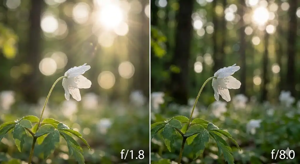 玉ボケを作る上で、最も重要なカメラの設定が「絞り(F値)」です。絞りを開ける、つまりF値を小さく設定すればするほど、ボケは大きく、柔らかくなります