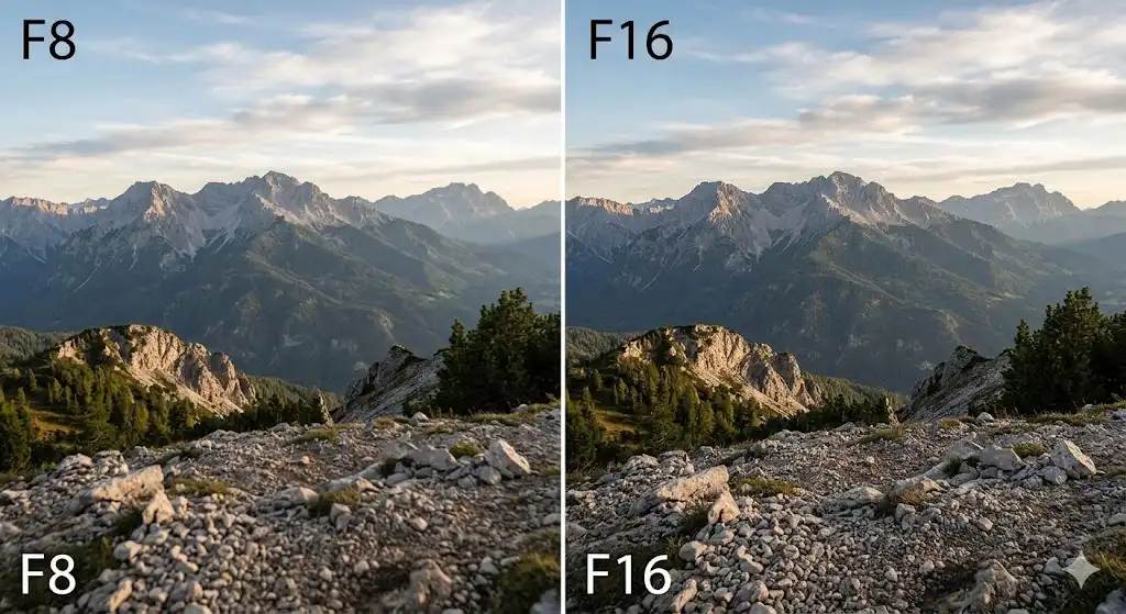 F値の違いが風景写真にどのような影響を与えるか、実際に比較してみましょう。