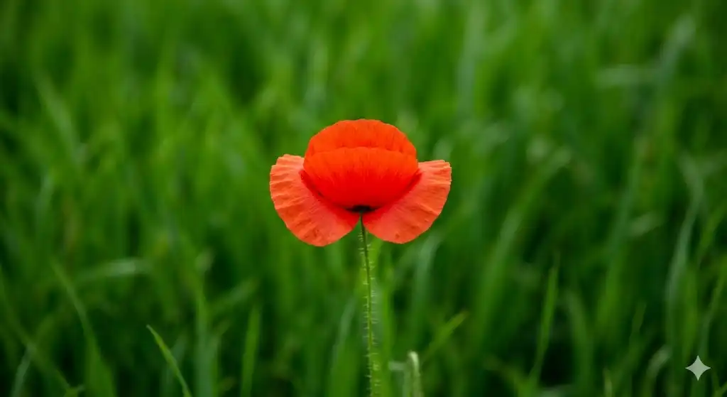 一面に広がる深い緑色の草原。その中に、一輪だけ真っ赤なポピーが咲いています。緑と赤は補色の関係にあります。背景の緑が赤を引き立て、逆に赤が緑の深さを強調しています。もし、この花が黄色やピンクだったら、これほどまでのインパクトは生まれなかったでしょう。