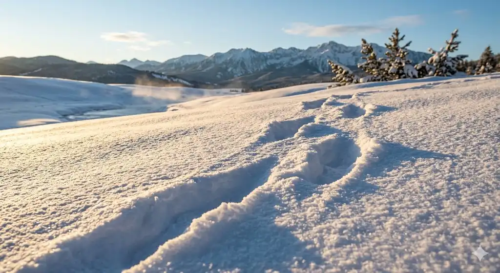 - コツ: 朝日や夕日の光が雪原に反射する様子を狙いましょう。長い影を利用すると、より印象的な写真になります。