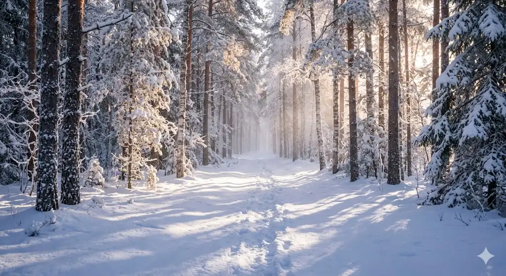 雪景色は、光と影のコントラストが非常に美しいです。特に、朝夕の光は、雪原に長い影を作り、幻想的な雰囲気を醸し出します。